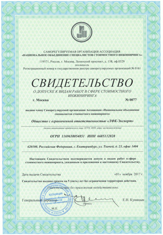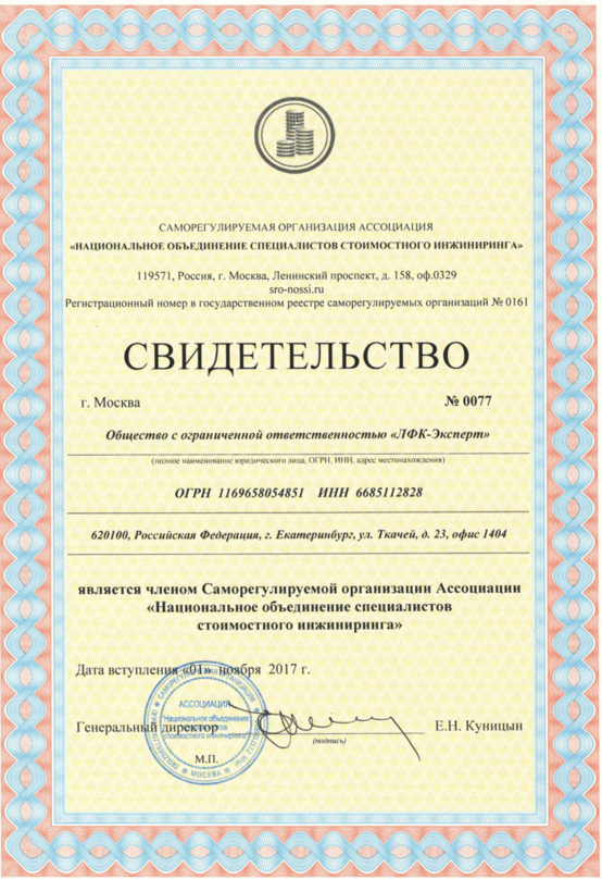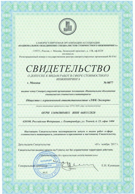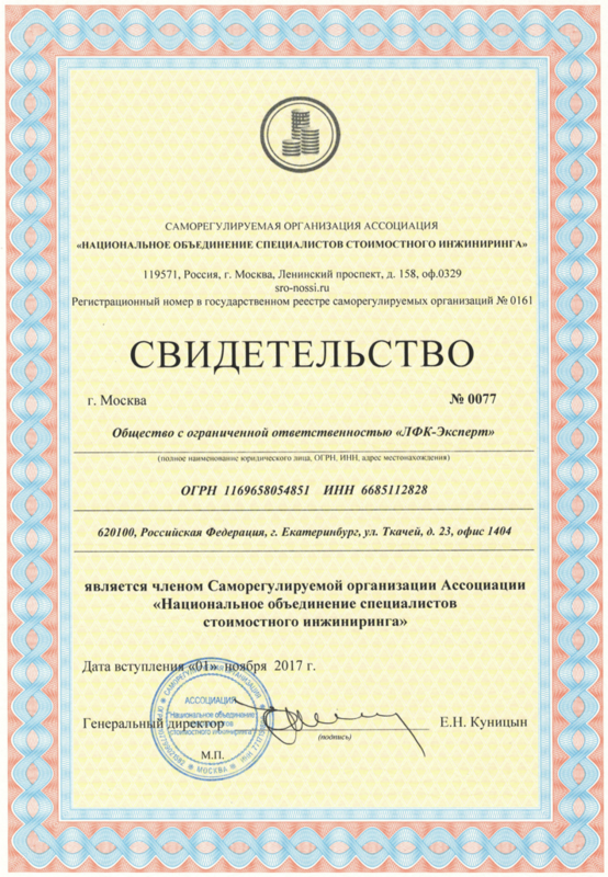 на право оказания негосударственной экспертизы проектно-сметной документации